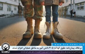 ۱۴۰۴/۰۹/۰۵ هرانا برخلاف تعهدات بینالمللی ایران تحت عنوان الحاق به پیماننامه حقوق کودک و تعهدات مربوط به عدم بهکارگیری کودکان در امور نظامی، دستکم ۴۰۵ دانش آموز از شهرستان های بردسکن، بابل، ساوجبلاغ و مهولات، به اردوی موسوم به “راهیان نور” در مناطق عملیاتی کشور اعزام شدند. به گزارش خبرگزاری هرانا به نقل از مهر، …