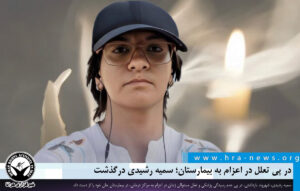 ۳ مهر ۱۴۰۴-هرانا خبرگزاری هرانا – سمیه رشیدی، شهروند بازداشتی، در پی عدم رسیدگی پزشکی و تعلل مسئولان زندان در اعزام به مراکز درمانی، صبح امروز پنجشنبه ۳ مهرماه در بیمارستان جان خود را از دست داد. وی در تاریخ ۲۵ شهریورماه در نتیجه وخامت وضعیت پزشکی دچار تشنج شد و با سطح هوشیاری بسیار …